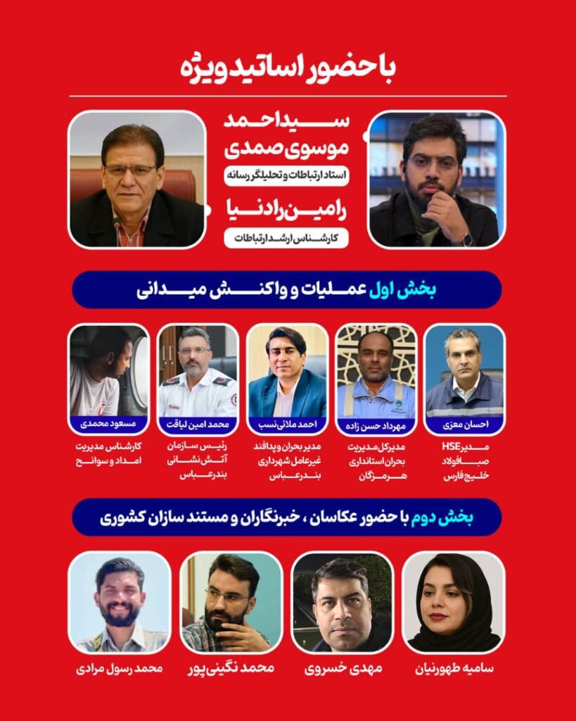 در این نشست که با میزبانی جمعی از نهادهای رسانهای و فرهنگی استان هرمزگان برگزار میشود، کارشناسان و مدیران فعال در حوزههای امداد، آتشنشانی، مدیریت شهری و صنایع، به بازخوانی تجربیات میدانی خود در مواجهه با بحرانها میپردازند و روند انتقال این روایتها به رسانهها را بررسی میکنند.